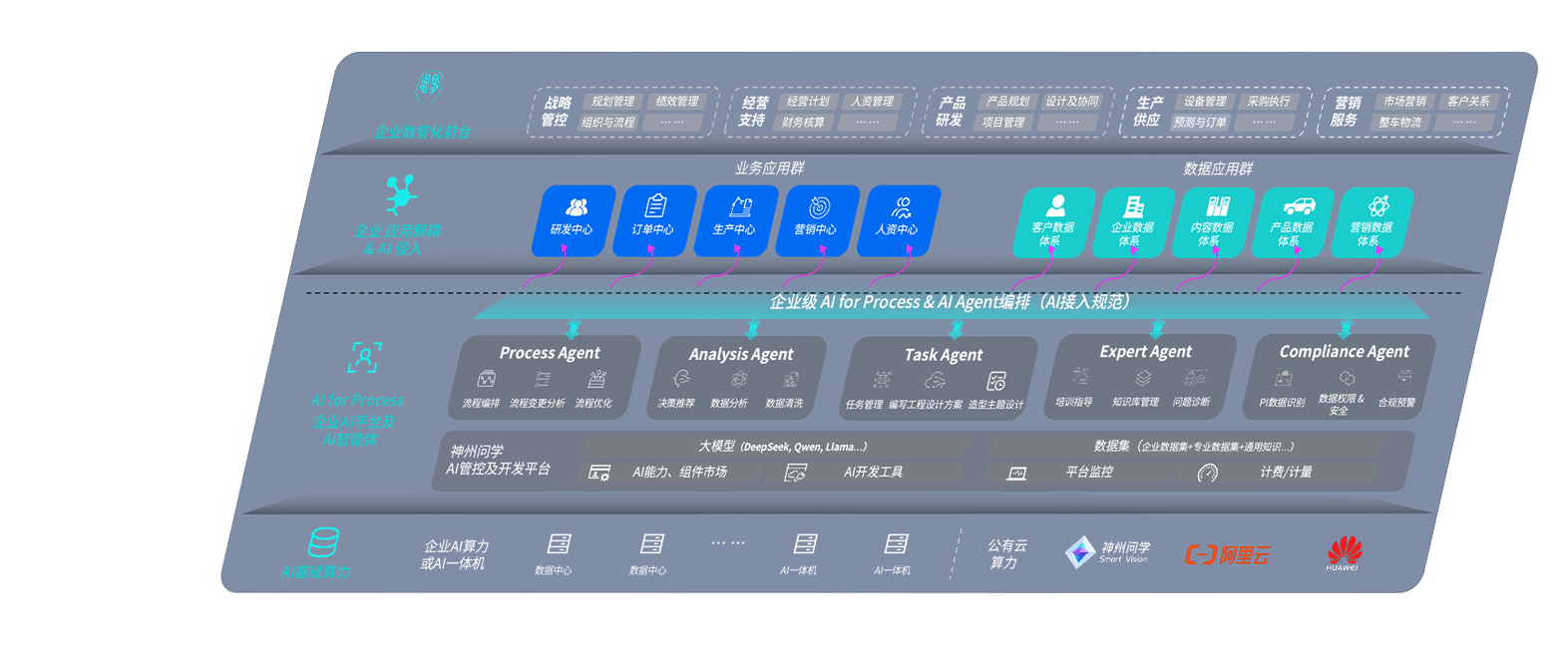 尊龙z6问学智车解决方案是一套基于AI技术的汽车行业智能化系统,,,,覆盖从底层算力到顶层AI应用的全栈方案。。。方案由算力层、、、模型层和应用层组成:算力层,,,方案支持多种一体机配置,,具备云端灵活部署、、多云适配以及动态优化计算资源的能力;模型层,,尊龙z6问学平台版提供了企业级AI应用一站式构建与管理平台,,,支持基于后训练强化技术的汽车企业专属模型的训练、、评测和运营;应用层,,,尊龙z6问学DeepSeek版提供包括超级员工、、智能招采、、、、智能营销、、智能客服、、、、AI for BI等一系列解决方案,,,可助力汽车行业实现数字化转型,,,,让管理更智能、、、响应更敏捷。。。。